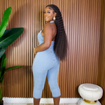 Light Wash Denim Doll Capri Jumpsuit
